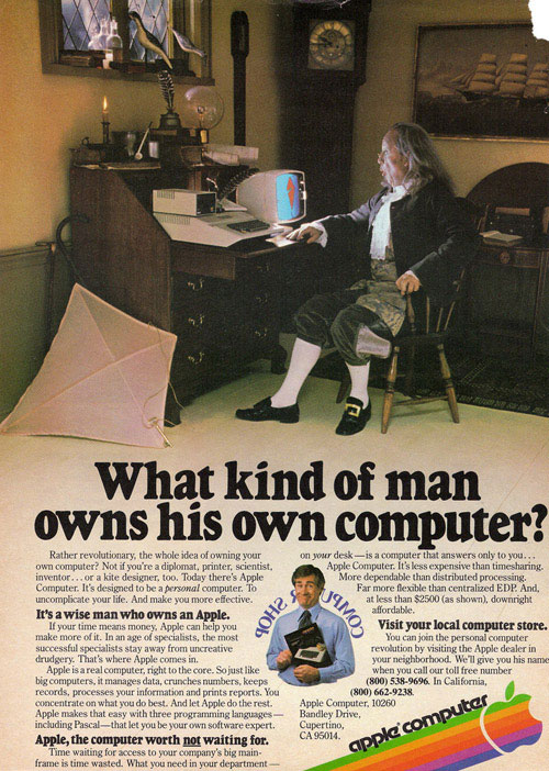 Ben Franklin used an Apple computer to create his kite design? You can bet that some kids saw this and actually believed it. Leave it up to Apple to make history seem more interesting.