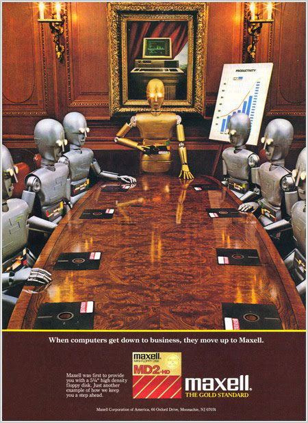 This ad for Maxell floppy disks plays on everyone’s love for C3P0 and 5 1/4″ floppy discs.