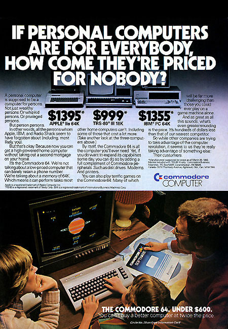 This advertisement makes a good point about personal computers being over priced for everyone to own them but they could have put that the Commodore 64 is under $600 in bigger font so that it is more noticeable. I almost didn’t see it.