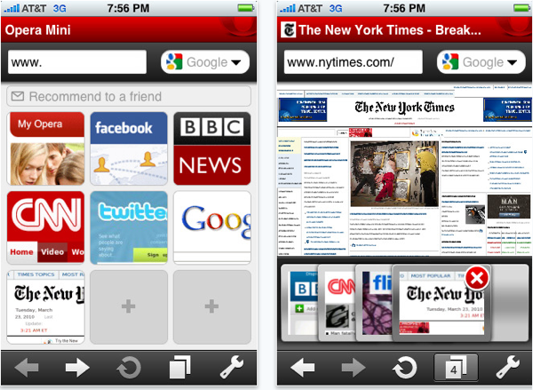 Opera, the smallest big browser that is widely acknowledged, has had two impressive feats accomplished recently. It was accepted into the App Store, after numerous failures to get in because of Apple’s restrictive policies, and earned the number-one spot on the top free applications across the boards on the App Store.