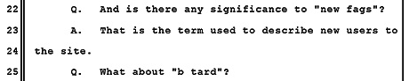 Specifically, I’m talking about one particular testimony, by none other than 4chan’s Christopher ‘moot’ Poole. For reasons unknown, both sides felt it necessary that moot enlighten them as to the meaning of certain 4chan terminology (not to mention regular internet terminology, as well). moot promptly got them up to speed. Check it after the jump.