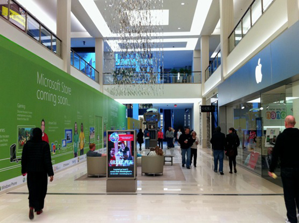 But this is perhaps no bigger a pissing contest than in the Mall of America, where Microsoft is opening a store less than ten meters away from the Apple Store – directly across the hallway.