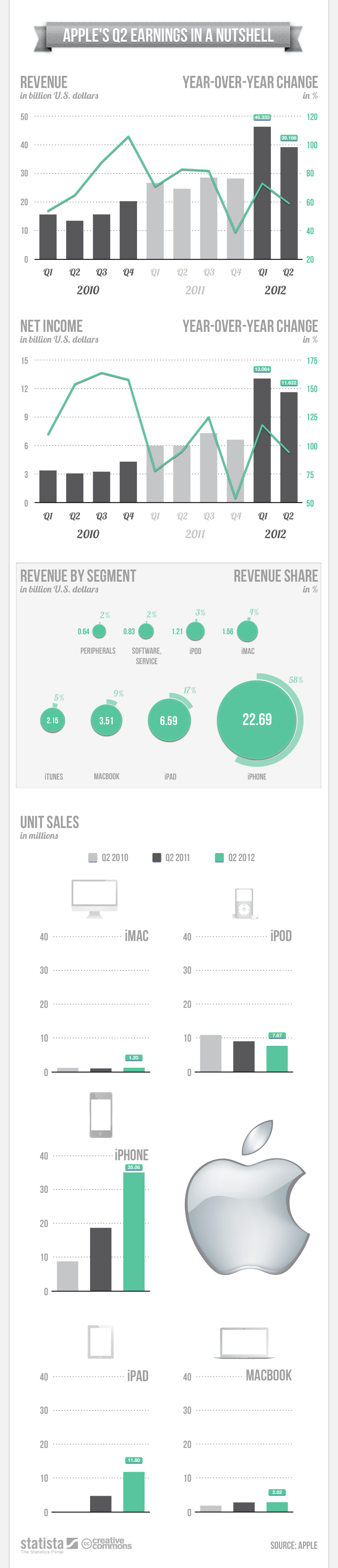 iPhone dominated the revenue-generation for the company again, accounting for 58%. iPad followed at 17%.