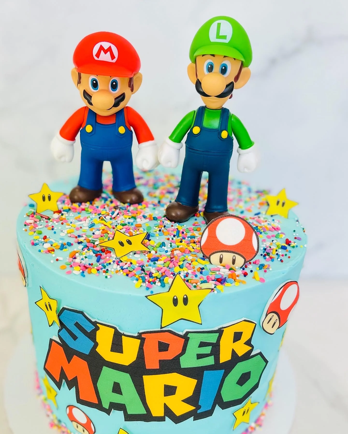 This awesome Super Mario cake looks too awesome to eat plus it looks a little hard to cut.