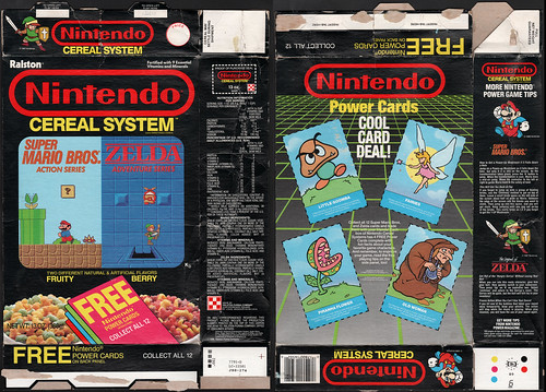 In the 1980s, Nintendo crated a cereal for fans called “Nintendo Cereal System”. The box carried two flavors, one on either side, that featured the characters from Super Mario Brothers and Zelda.