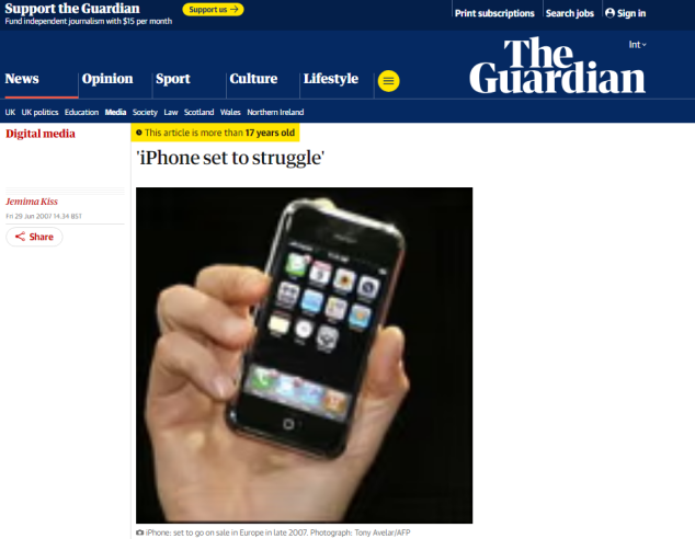 This one by stalwart and venerable The Guardian turned out to be a doozy on many levels. Check out the original article on this, the five year anniversary of the first iPhone sold.