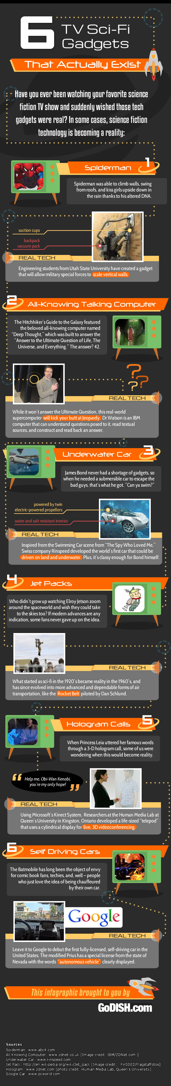 In the following infographic you will be able to check out 6 Science Fiction Gadgets That Actually Exist.
