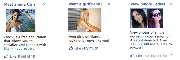 If you happen to see the advertising that appears on Facebook, you just might have noticed the nearly endless supply of “boyfriend” or “girlfriend” wanted advertising that appears in the sidebar. I have seen far too many these advertisements (Facebook knows me far too well), with some of them being borderline nudity. Then again, perhaps Facebook is a great place to start building an intimate relationship from. Well, maybe not.