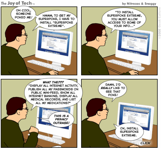 Speaking of privacy: it pretty much doesn’t exist on Facebook — to assume otherwise would be crazy. Posting pictures of you in bars being wild is probably not too smart. A simple solution is to think of Facebook like Twitter: assume everything is being broadcast to the world. It makes you safer and it makes Facebook feel better because that is exactly what the company wants.