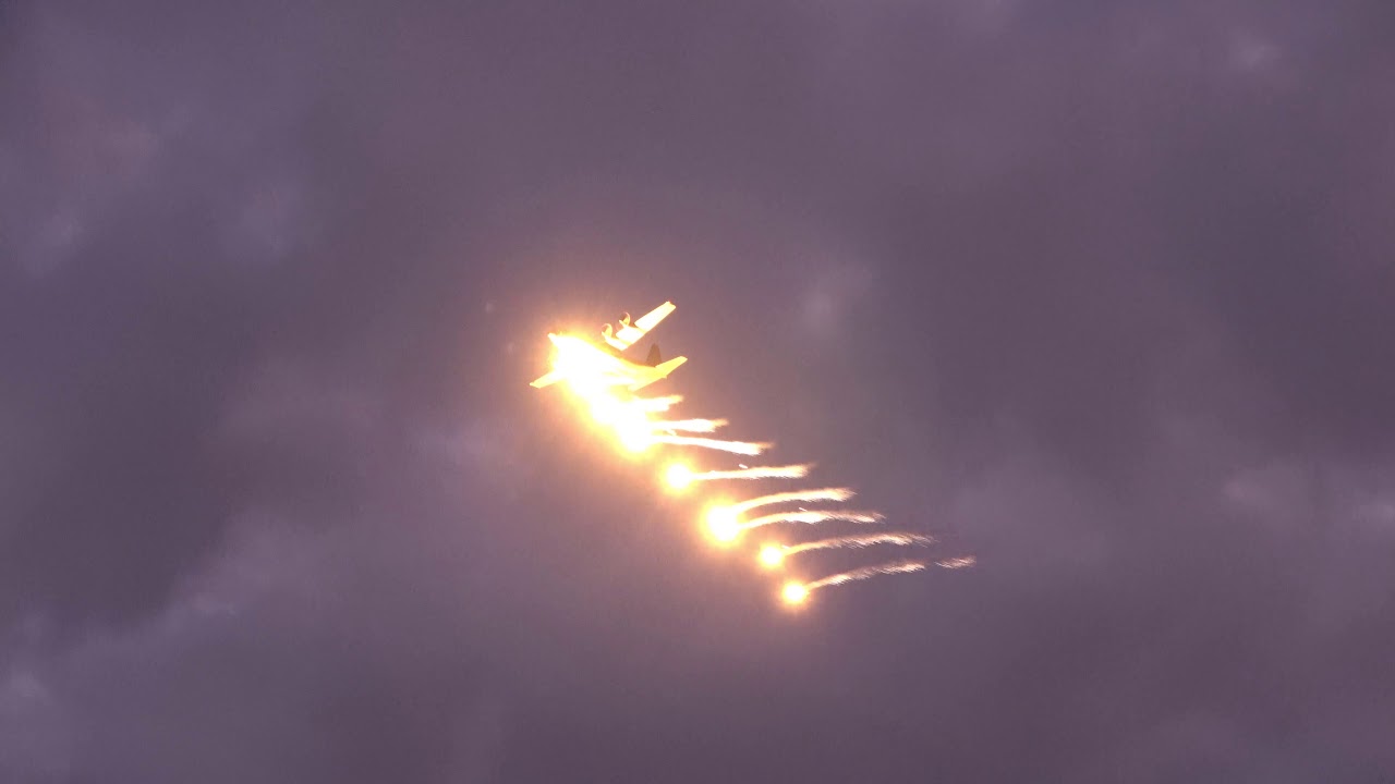 The angel flare pattern is well known in both military circles as well as the world of photography for its stunning visuals and incredibly effective countermeasure capabilities. Dozens of flares are ejected from various points on large war planes like the AC-130 to protect the slow, sluggish planes from being hit by heat-seeking missiles.