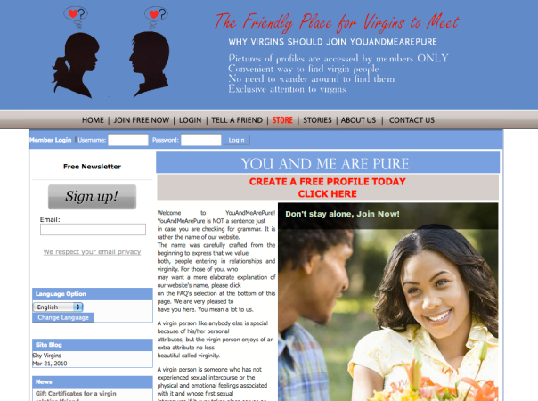 “We are still happily married despite that we entered marriage intimately inexperienced. But like everything in life it takes learning and we have been having each other to accomplish that. Some people may overlook the bonding power of virginity,” the site explains. It continues with some very deep thinking: “Virginity as an important common aspect between people can lead to close friendships, or can even serve as a mutual precious gift of marriage.”The site has a free basic membership but gold and silver memberships can cost upwards of $50 a month. You can also buy V-cards and bracelets to share your innocence with the world.