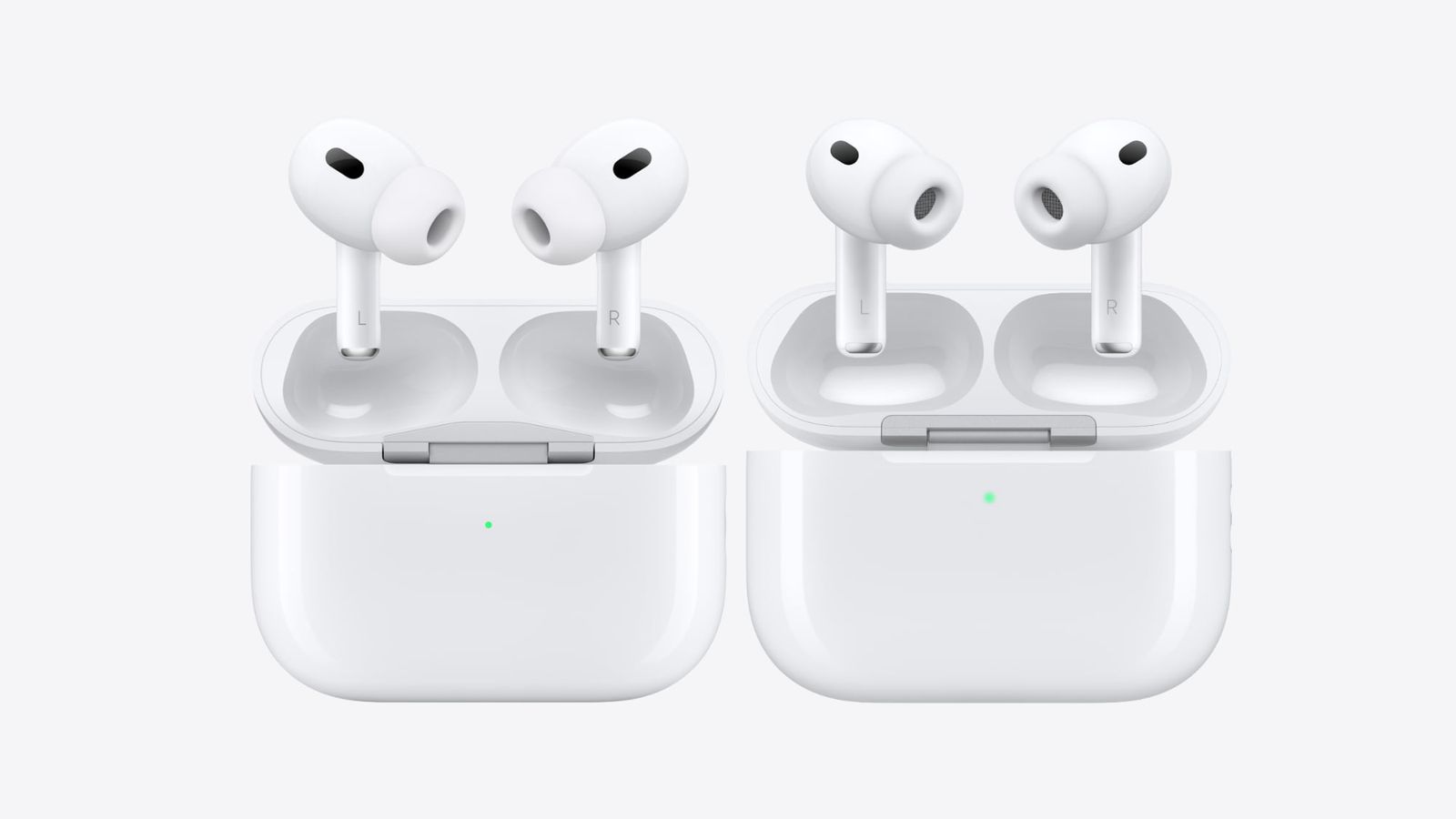 AirPods Pro 2 on left & AirPods Pro 3 on right