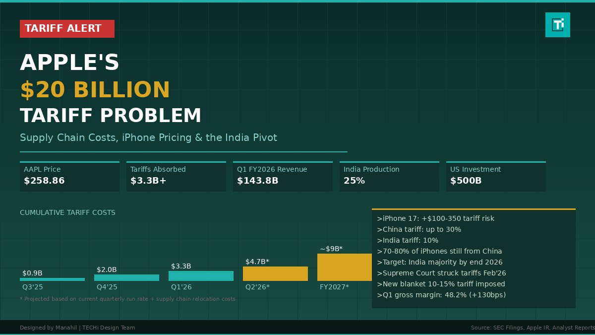 Apple’s tariff problem is not a crisis. It is a structural cost that compounds over time. The $3.3 billion already absorbed is manageable for a company generating $42 billion in quarterly profit. But compounding $5 billion or more per year in tariff and supply chain costs, while simultaneously funding a multi-billion dollar manufacturing migration to India, tests even Apple’s legendary financial resilience. The $20 billion cumulative figure is not inevitable, but it is plausible under current policy trajectories.