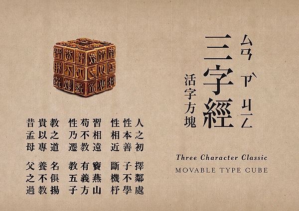 Chinese has a long history with the printing. In 105 AD, Cai Lun invented the paper. In 200 AD, the Chinese invention of Woodblock printing produced the world’s first print culture. In 1040, Bi Sheng invented the first known movable type technology. Therefore, I want to use a Chinese text for my cube. The text I used for my cube is called “Three Character Classic.” It is a traditional Chinese text that teaches young children to be a good person in the society. The text is written in triplets of characters for easy memorization, which is perfect for the cube since the cube is 3 by 3 on every side. The text is written by Wang Yinglin during the Song Dynasty, so I used a font called “Song,” which is correspond to the Song Dynasty when a distinctive printed style of regular script was developed.