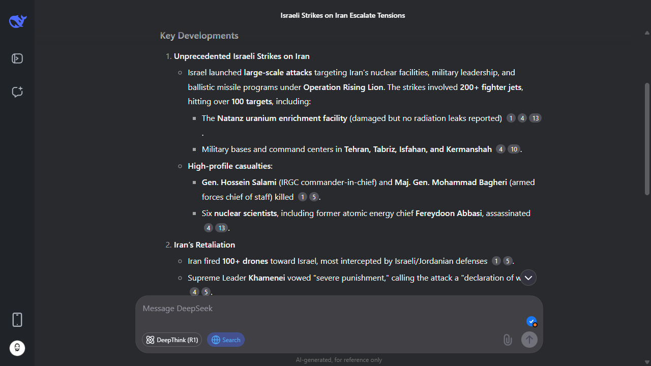 Although DeepSeek and ChatGPT have many features in common, but ChatGPT stands out here. ChatGPT has a built-in web browsing feature that allows it to fetch the latest information directly from the internet. It means we can ask it about trending news, new research, or the latest updates on a topic, and it will search the web for reliable sources and include them in its responses.