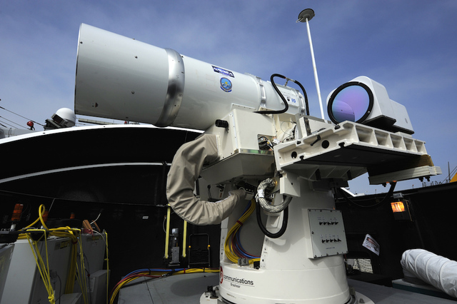 “You’ve seen what it’s suited to: A small drone, or something like that,” said Navy Admiral Jonathan Greenert. “It might also be suited to be able to address small boats or fast craft.”
