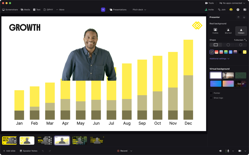 The program, dubbed Airtime Creator, allows you to deliver slides to your audience rather than only displaying them. You can also select to have up to ten persons appear on screen simultaneously.