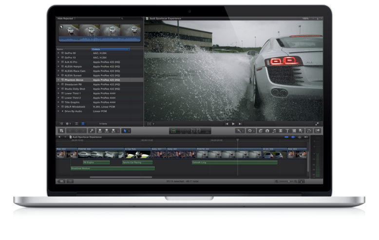 Another notable feature is effect playback in real-time. This means one can go through the effect presets and preview them without having to apple them onto the shot first. Apple has also integrated their popular color-grading and connection software “Color” into FCPX. Oh, and FCPX doesn’t run audio as default mono or stereo tracks, it reads it as 5.1. Who needs anything else when you have 5.1 to work with!