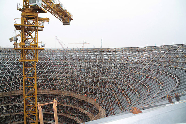 Pictured above is the completed construction of one of the many buildings on the event’s grounds. Below is another of the building sites, not having reached completion yet. As you can imagine, the buildings are massive because of all of the amazing events and visitors that will be attending.