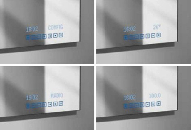 Next are the clock and temperature displays also lit by LEDs, giving you no excuse to be late for work. In addition, embedded controls keep your mirror from fogging up. Now all it needs is a self cleaning mechanism to ward off all those finger smudges on the glass after switching songs and radio stations.