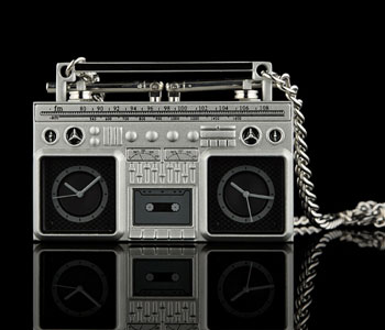 On top of it all, the clocks on the ‘speakers’ of this ghetto blaster are functioning timepieces that allow you to keep track of two timezones – so, ya’ know, your crew in Atlanta and your, um, dope friends in NYC.