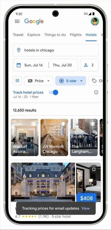 Google is now expanding its flights alert feature to hotels. Till now Google sends alerts to its users whenever there is a price drop in flights. Now Google is extending this feature to hotels also in particular regions. Users can find a new option to track hotel prices for chosen dates and places. Via email, Google will send alerts to its users whenever there is a price drop for set hotels or destinations. This feature is being launched globally this week for mobile and desktop users.