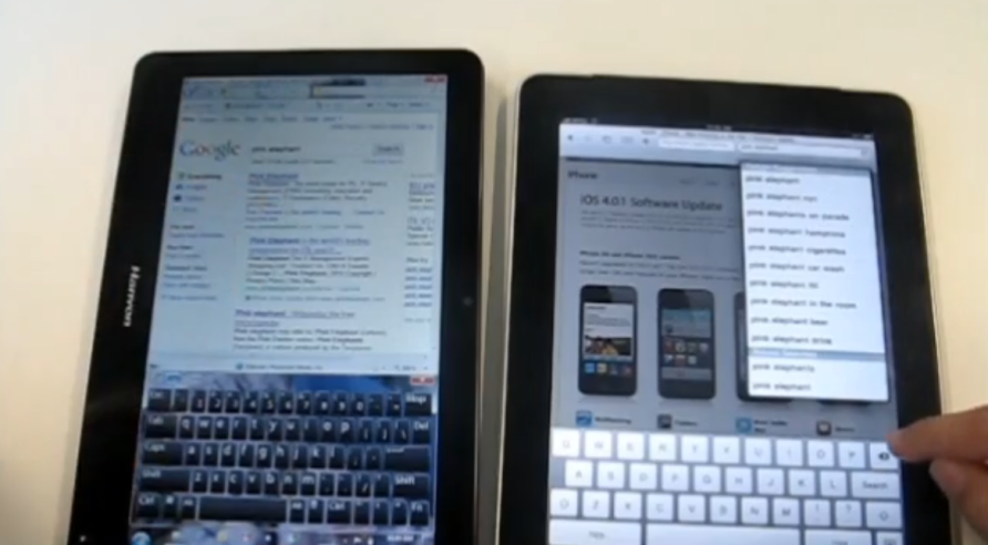 Well, here’s a video comparing a tablet that snuck out to market with an iPad.