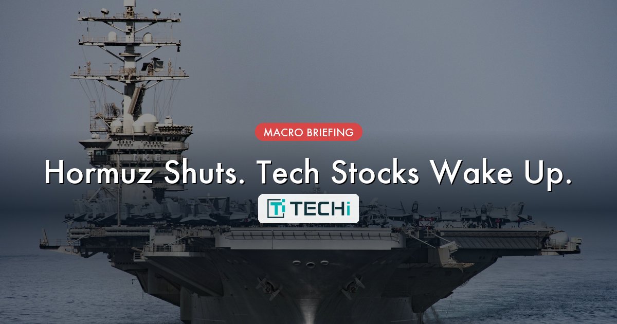 The strait matters because it is the physical chokepoint for about one-fifth of global oil supply. Every tanker that cannot move moves the oil price. Every oil-price move moves inflation expectations. Every inflation print moves rate expectations. And every rate move reprices the part of the tech tape whose multiple depends most on long-duration cash flows. That is the chain the market is pricing this morning.