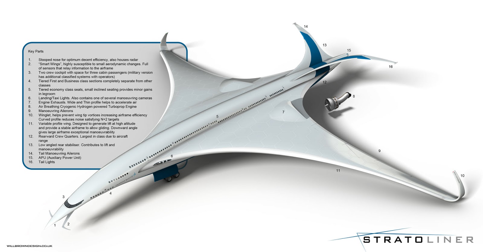 Lockheed has released conceptual images of a new aircraft inspired the Bar-tailed Godwit, a bird that makes the longest known non-stop flight without stopping to feed (7,258 miles to be exact). The Stratoliner concept is said to boast an equally impressive range thanks to its hydrogen-powered engines.
