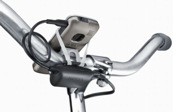 Nokia has come up with a way to charge your phone using the static electricity created by your rotating tire on your bike, therefore charging your phone while riding around town. The bike charger kit will include a DC-14 phone charger, a phone holder that you can attach to your bicycle, a dynamo (used to power the batteries), and a bunch of other accessories to install the device on your bike. The charger will be compatible with any phone with a standard 2mm charging jack.