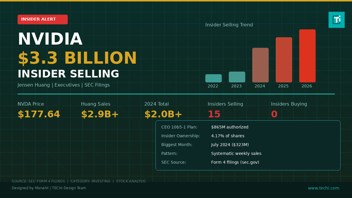 The most recent CNBC report confirmed that Nvidia insiders sold more than $1 billion in shares over just one year, and that pace has only accelerated since. TECHi’s analysis of the $20 billion Nvidia-Groq deal explores how acquisitions fit into the broader AI strategy that insiders are simultaneously selling into.