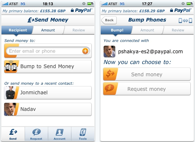 The new feature marshals tech from start-up Bump Technologies. Additional new talents include enabling a user to send a money request to contacts from within the App. Also new is the facility to transfer cash from PayPal into your bank account using the App.