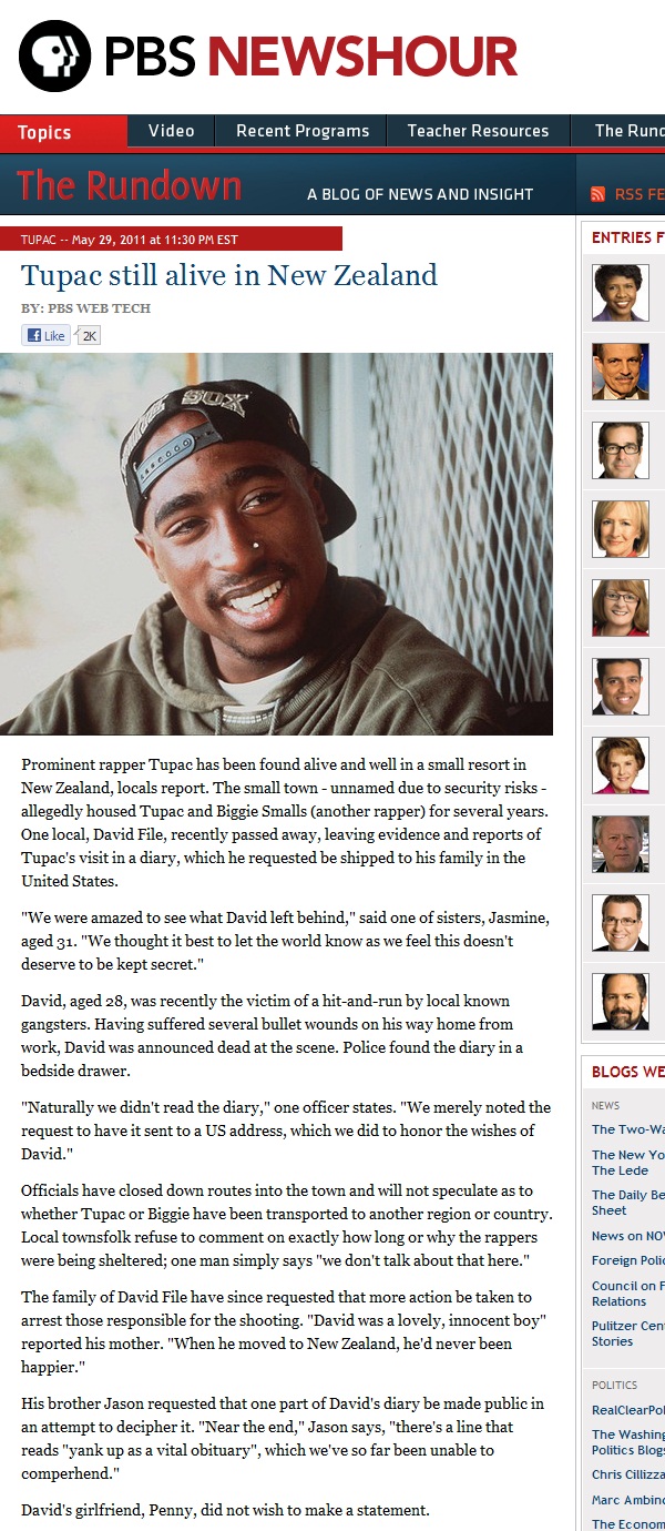 PBS was hacked today by LulzSec, a notorious group of hackers who attack for “fun and infamy” rather than for financial or activist reasons. Through the database, they secured login credentials and posted an article claiming that rappers Tupac Shakur and Biggie Smalls were found alive and well in New Zealand.