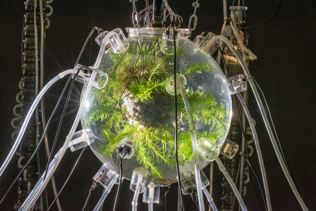When the fuel source (the microscopic critters) need their own food, the plantbot shuffles towards water, where the organisms convert their food into electricty, to power the bot. The plants also get fed, too – everyone wins!