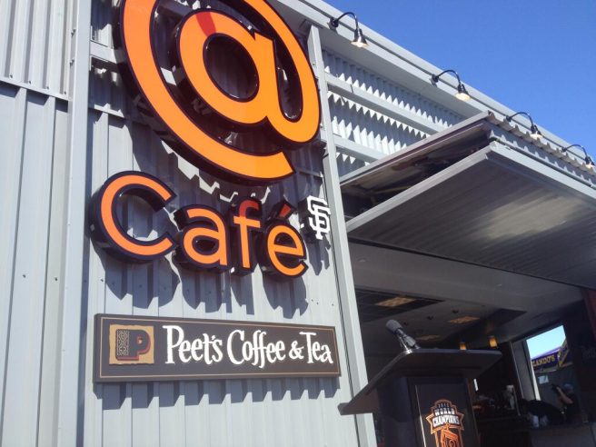 The @Cafe debuted last night against the San Diego Padres, behind the cheap seats in centerfield at AT&T Park. It is the first of its kind, becoming an on-site social media headquarters of sorts for fans to interact with. The café features a 12 by 4 foot screen that shows posts from social media accounts globally, in real-time, as well as by fans who follows the Giants’ accounts on Facebook, Instagram and Twitter. The café will also have special events, such as Twitter chats with players. Srabian promised fans that new features will be released as the season progresses.
