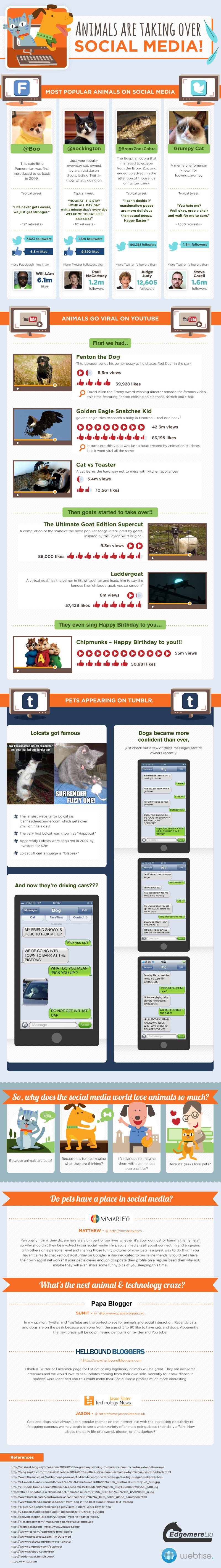 In the infographic below by Pintrest , you can take a look at how animals are taking over social media.