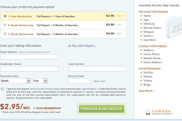 For a measly $4.95 per month, potential stalkers, convicted felons, and bitter ex-lovers can get a bit more information on you. That is, if they’re crazy enough to provide this data devouring beast with their credit card information. Fear not, though, logic isn’t among the strongest of traits in the obsessive.