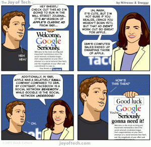 In this cartoon by the geniuses at Joy of Tech, Facebook CEO Mark Zuckerberg invokes the 1981 ad that Apple...