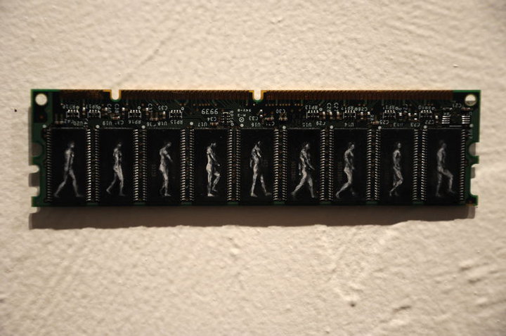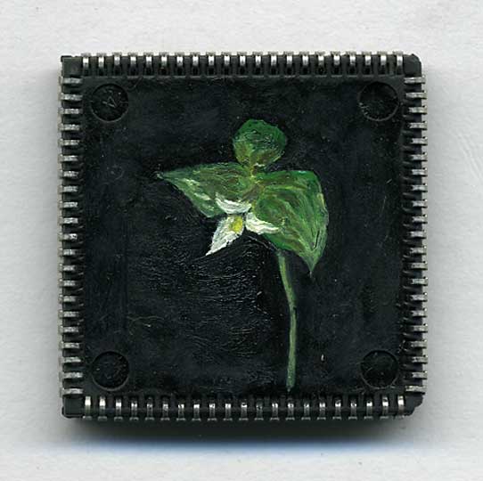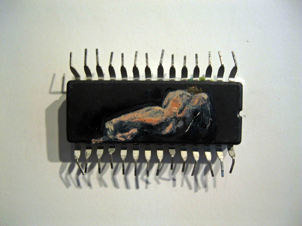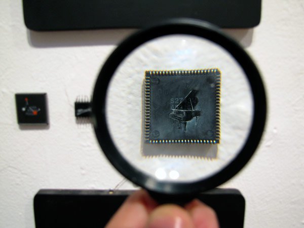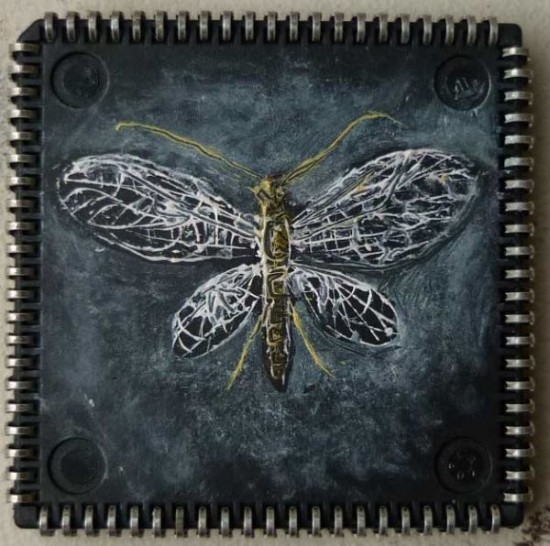 As for subject matter, Yuri is eclectic. “I seek poetic images which raise questions and strike metaphorical chords when painted on microchips,” he says. And it ain’t no jape – Yuri’s organic imagery, juxtaposed with the high-tech substrate, truly does create a beautiful, subtly mystic quality that speaks to concepts such as evolution and technology’s role. It’s great stuff. Have some more of it to finish off your week, why don’t you?