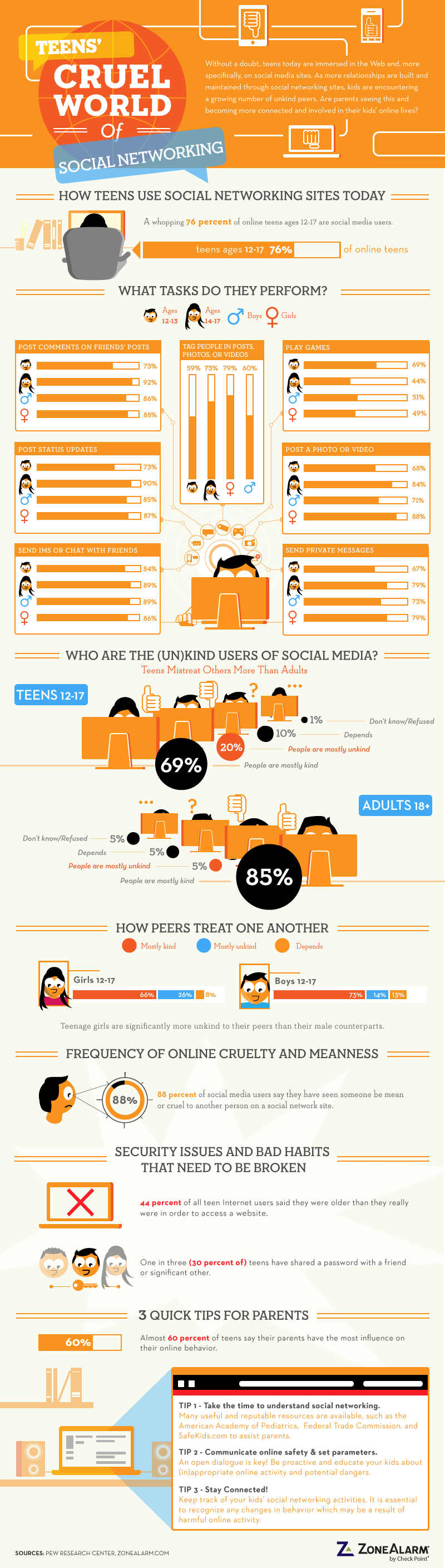 This infographic by our friends at ZoneAlarm breaks down the world of teen social networking as we know it. Click to enlarge.