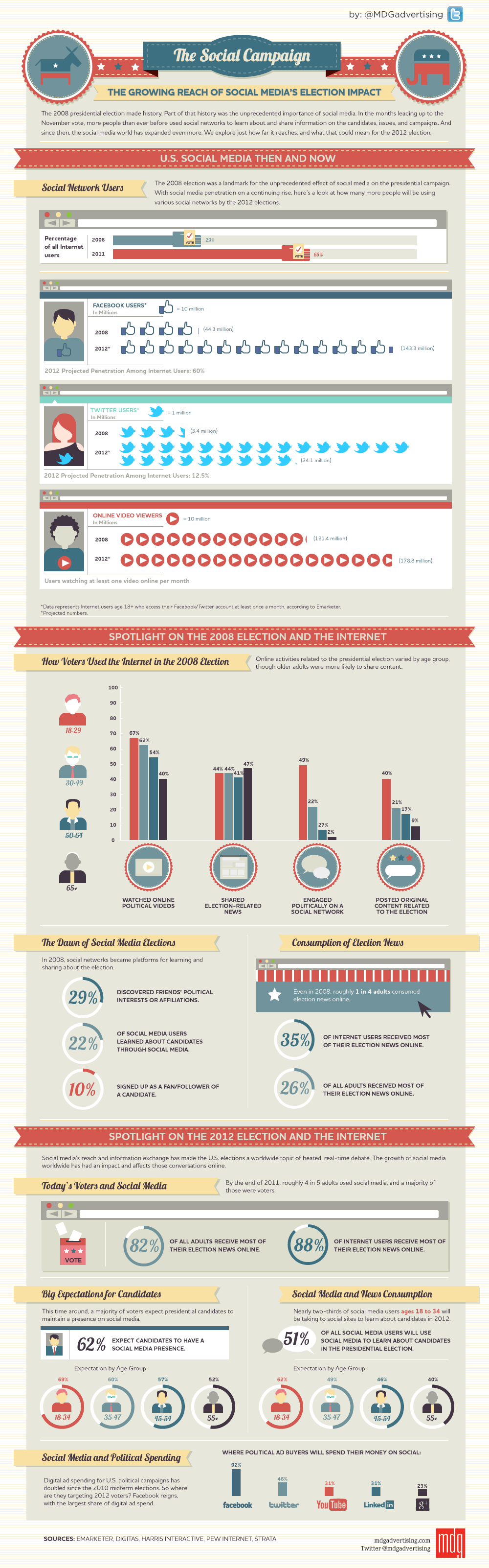 This infographic by MDG breaks down how social media has impacted the election so far and what effects it will have come November. Click to enlarge.
