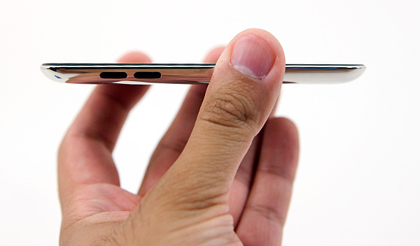 ”By that, I mean the back of the device will taper to the edge, and the back will be covered in something more ‘luxurious’ that the brushed aluminum look it has now.