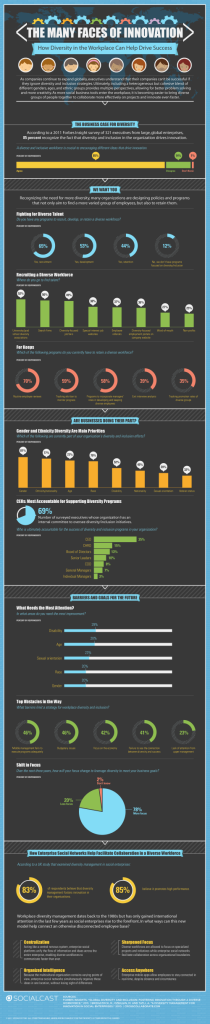 In this infographic by Pinterest, they make a case for diversity in the workforce as well as the use of social collaboration tools to push businesses forward. As with any change, there are barriers, but a well-run company can overcome these challenges and reap the benefits of a strategy based on inclusion rather than the old ways of thinking.