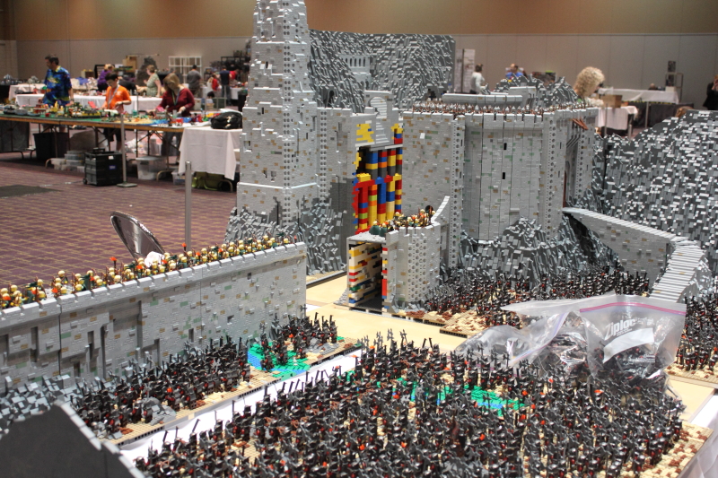 So far, it has taken 150,000 LEGO blocks to put this thing together. It’s not complete, but you probably won’t even notice. LEGO pros Rich and Big J K have outdone themselves with this particular creation. In the book/movie, the kingdom of Rohan was being threatened by Uruk-hai orcs sent by Saruman. The Rohirrim took refuge at Helm’s Deep to make their last stand and the Battle of the Hornburg ensued. It was one of the most amazing book/movie battle scenes in history, culminating in the timely appearance of the White Wizard.