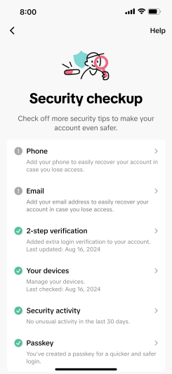 - Suspicious Activity: One of the key features of TikTok’s Security Checkup is to detect unusual behavior in an account and report it to the user