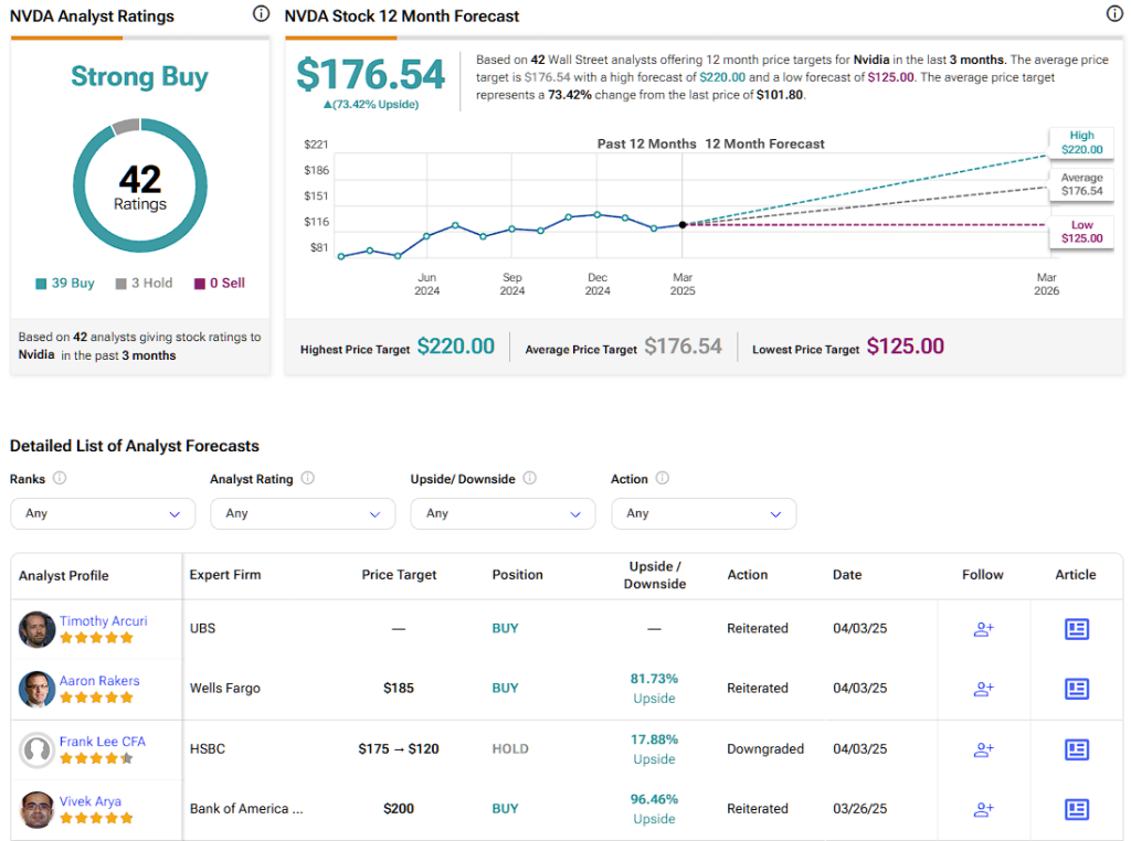 Investor sentiment appears firmly optimistic. Out of 42 analysts tracking Nvidia, 39 remain positive, while three analysts are neutral. The average target price of $176.54 per share, reflects a potential benefit of 73%. That said, short-term traders should proceed with caution, as Tariffs imposed by Trump and uncertainties on the geopolitical front are considerable hindrances in the near term. Currently, Nvidia may benefit significantly in the long term. However, the prevailing circumstances suggest that a neutral move, profit-taking, or waiting for a better re-entry point may be the sensible option.