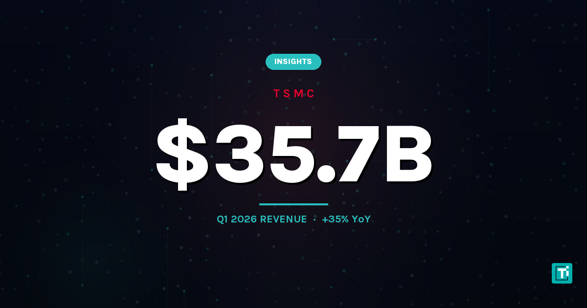 TSMC reported Q1 2026 consolidated revenue of NT$1,134.10 billion, roughly $35.71 billion at current exchange rates. That represents 35.1% year-over-year growth in NT dollars and lands at the high end of the $34.6 billion to $35.8 billion guidance range the company issued in January 2026.