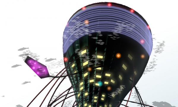 This building, if it can be called that, generates 100% of its own energy through solar panels, wind farming and the kinetic tentacles, has its own waste-processing and stabilizes itself like a fish by means of water ballast. The designers explicitly point out the fact that water covers 71% of the globe and “even more if climate change has its way,” so if they can’t generate enough oxygen to turn the tide, their tenants will not have to move anyway.