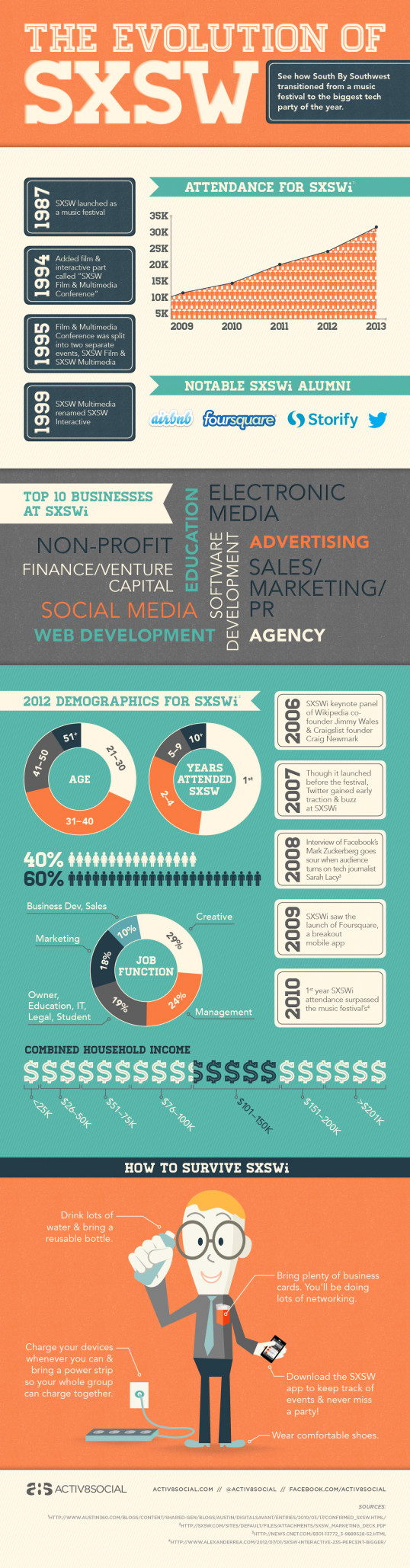 In case you need to understand the size and how the festival has evolved, here’s an infographic from Entrepreneur.