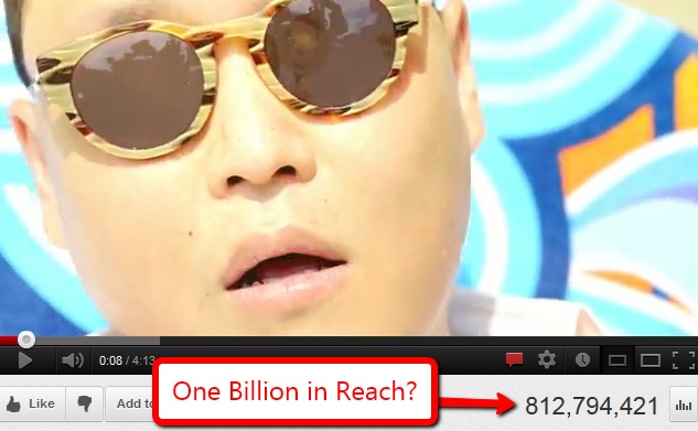 Social media is growing so quickly. It seems like yesterday that Ashton Kutcher was trying to get to 1 million Twitter followers ahead of CNN. Now, the new magic numbers are higher. On YouTube, the next great milestone will be one billion views on a single video and “Psy – Gangnam Style” is now the top contender to hit the magic number first after passing Justin Bieber’s “Baby” with over 800 million views.